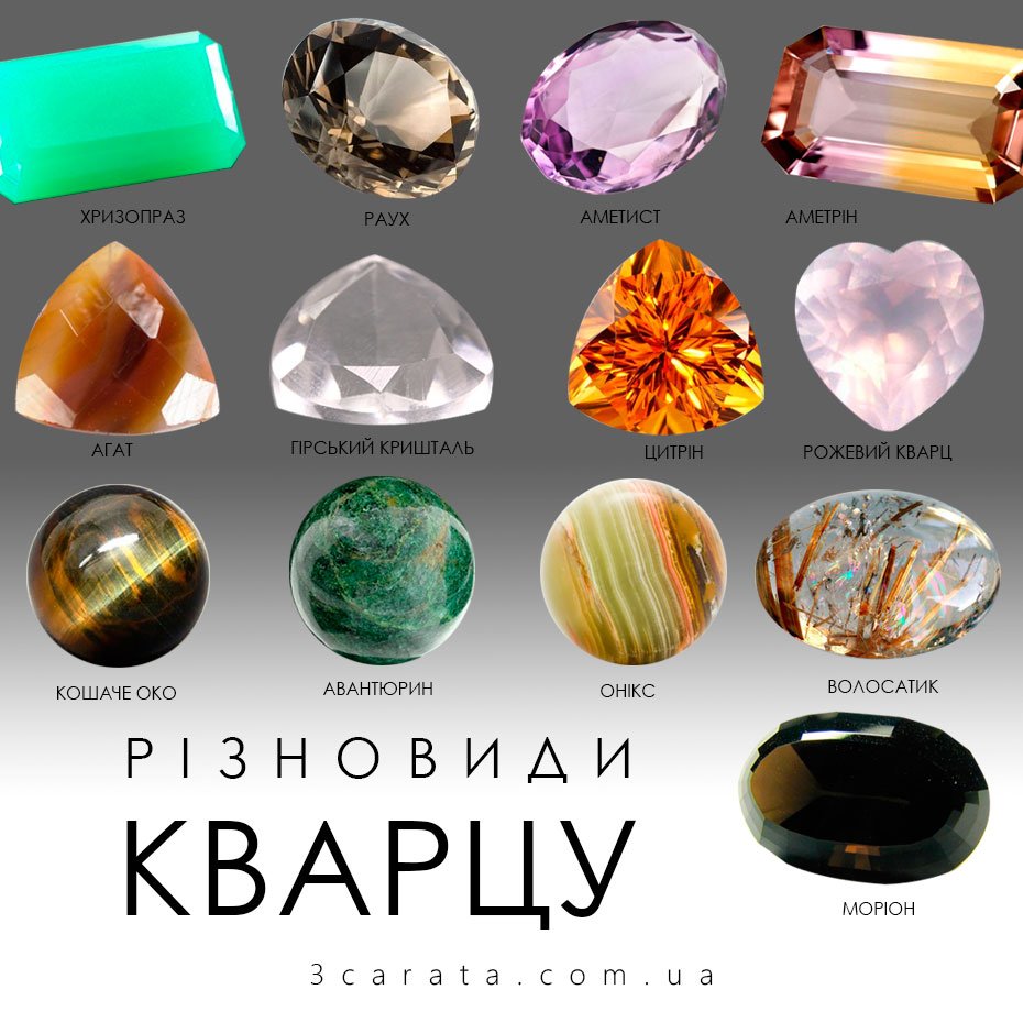 - Розовий кварц — кольору ніжності й любові. Вважається, що цей камінь покращує взаємини.