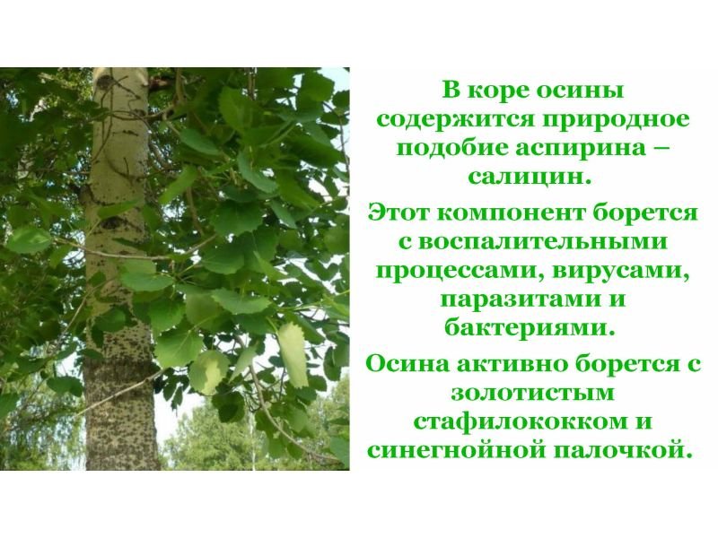То що ж робить кору осики таким цінним продуктом? Хімічні компоненти! Відкриємо маленькій секрет чи загальний факт — у складі кори є глікозиди, ароматичні кислоти та інші важливі фенолни з’єднання. Готуйтеся, це корисно: