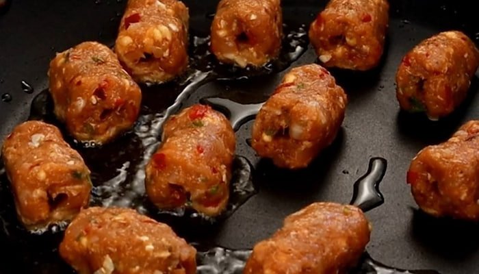 2. Сформуйте невеликі кульки з фаршу і обсмажте їх на олії до золотистої скоринки.