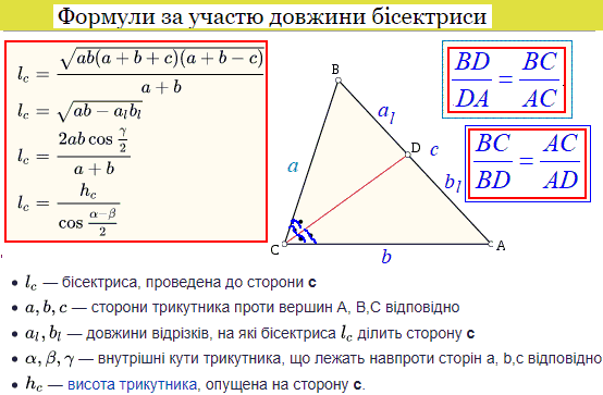 - Симетрія: Бісектриса створює два рівних кути, що часто допомагає в симетричних задачах.