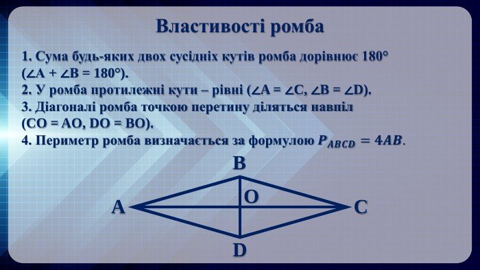 Основні властивості ромба