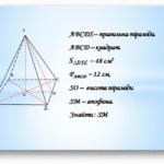 Не плутайте з висотою основи! Висота піраміди — це перпендикуляр від вершини до площини основи. Часто вона дається в задачі, але іноді потрібно розібратись, особливо в нестандартних пірамідах. Може, пощастить і вона буде рівною.