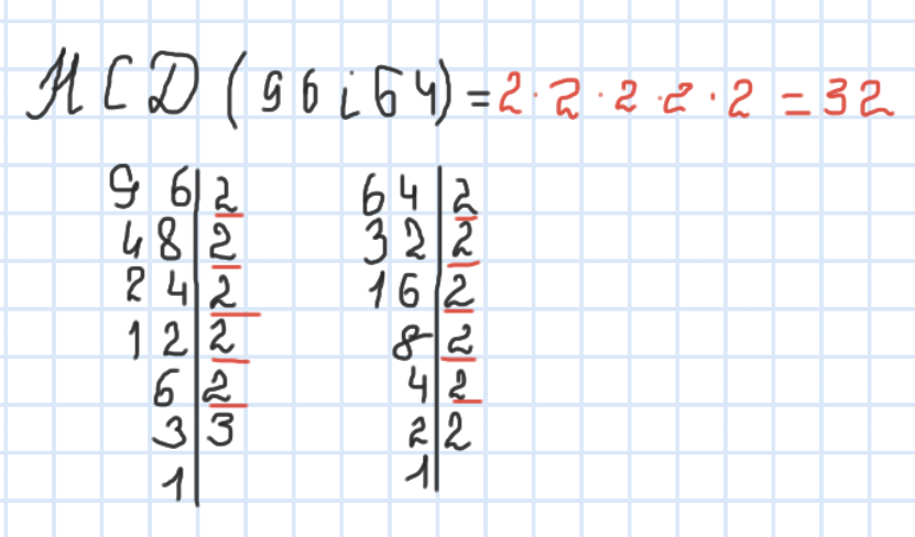 Цей метод передбачає розділення чисел на їх найпростіші частини — тобто прості множники. Далі все просто: треба знайти числа, які спільні для обох розкладів, і перемножити їх. Ось і спільний дільник перед вами.